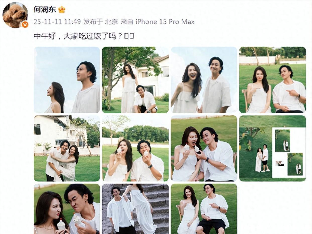 11 月 11 号,何润东在社交平台发了组和妻子的合影,甜度直接拉满!俩人相伴十几年,感情居然还跟热恋期似的黏糊,真让人羡慕到不行~ 他俩穿同款衣服出镜,完全看不出是多年夫妻,亲昵劲儿堪比刚在一起的小情侣,每一张都甜到心坎里。何润东留着中长发配耳钉,简单白上衣穿得清爽帅气,哪儿像奔五的人啊,保养得也太到位了!妻子一头长发,妆容精致,浅色吊带衬得仙气十足,40 + 的年纪完全没显老态,颜值身材丝毫不输艺人,夫妻俩这冻龄状态绝了。